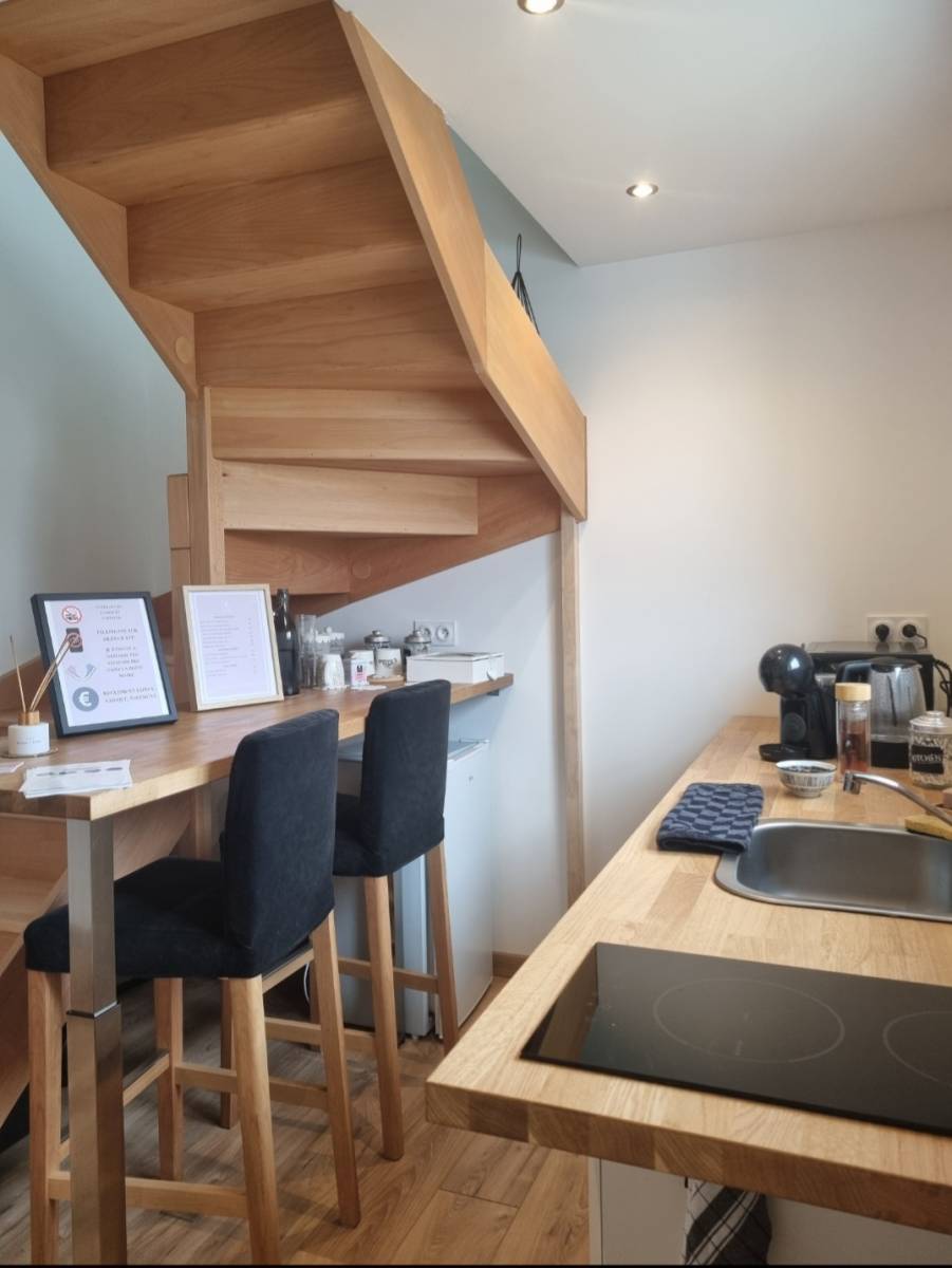 Me diférencier, tu l'as compris, c'ést aussi une de mes particularités. Alors plutôt que de créer un accueil avec un comptoir ou un bureau, j'ai créé une petite cuisine où tu pourras te servir une boisson chaude que l'on dégustera ensemble le temps de notre échange pour apprendre à mieux te connaître et cibler tes besoins, et te sentir bie comme chez Toi.